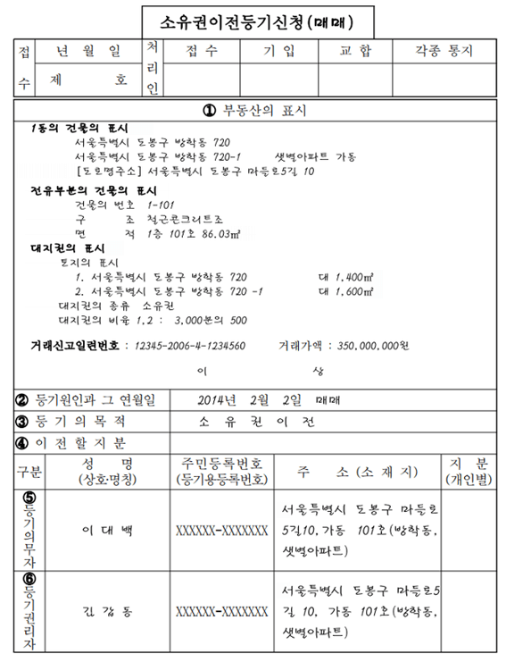 1. 소유권이전 등기신청양식 다운로드
